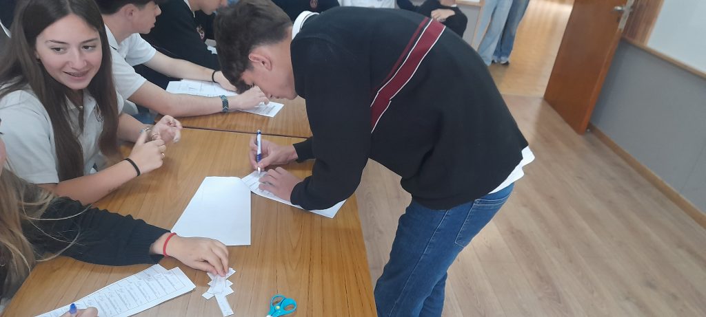 Esta actividad fue organizada por los alumnos de 5to año en el marco de las materias Política y Ciudadanía y Comunicación, cultura y sociedad, a cargo de la Prof. Eugenia Huinchulef.