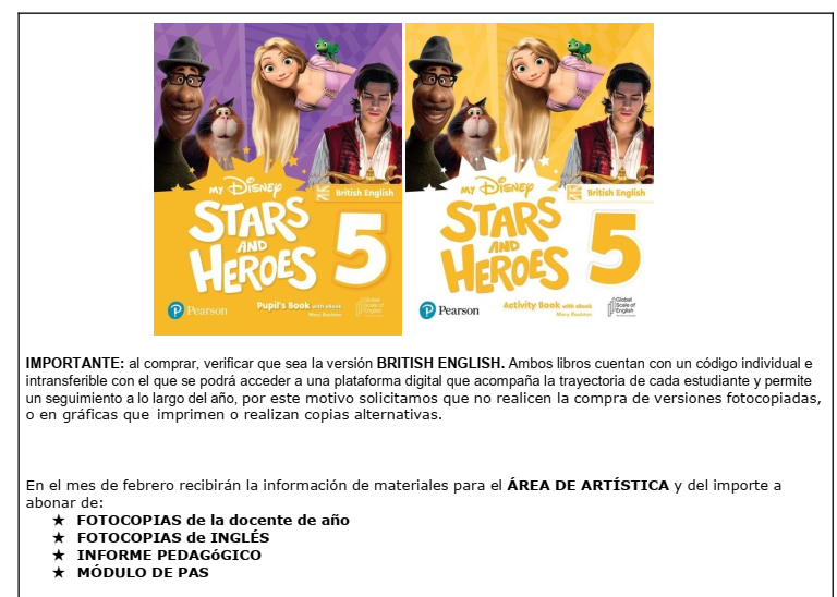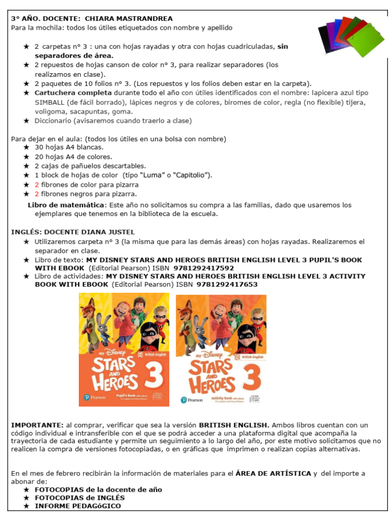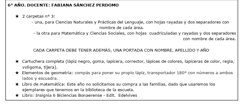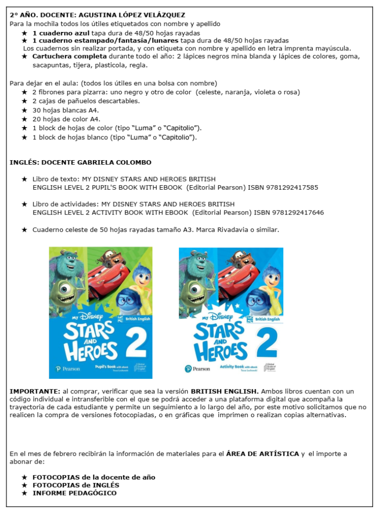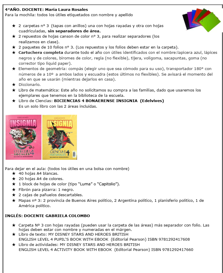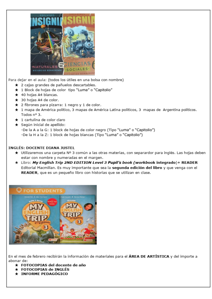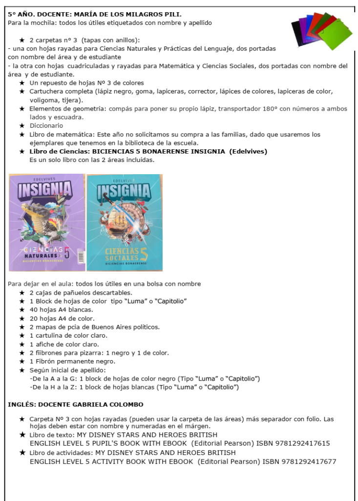 Listado de materiales 2026 – Primario Bolívar PRIMER AÑO SEGUNDO AÑO TERCER AÑO CUARTO AÑO QUINTO AÑO SEXTO AÑO
