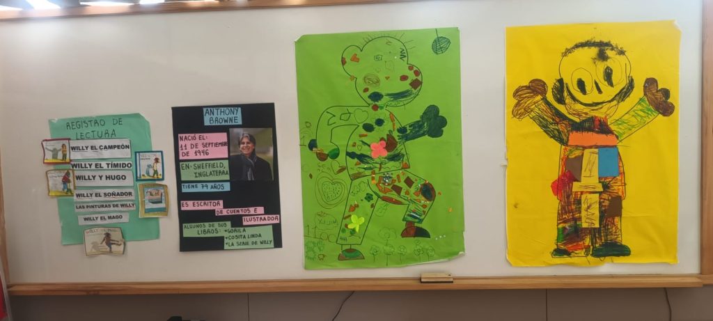 A partir de la propuesta los/as alumnos/as de 3ra sección (Nivel Inicial) y 1er año (Nivel Primario) conocieron al escritor Anthony Browne y a su personaje, el gorila Willy.
